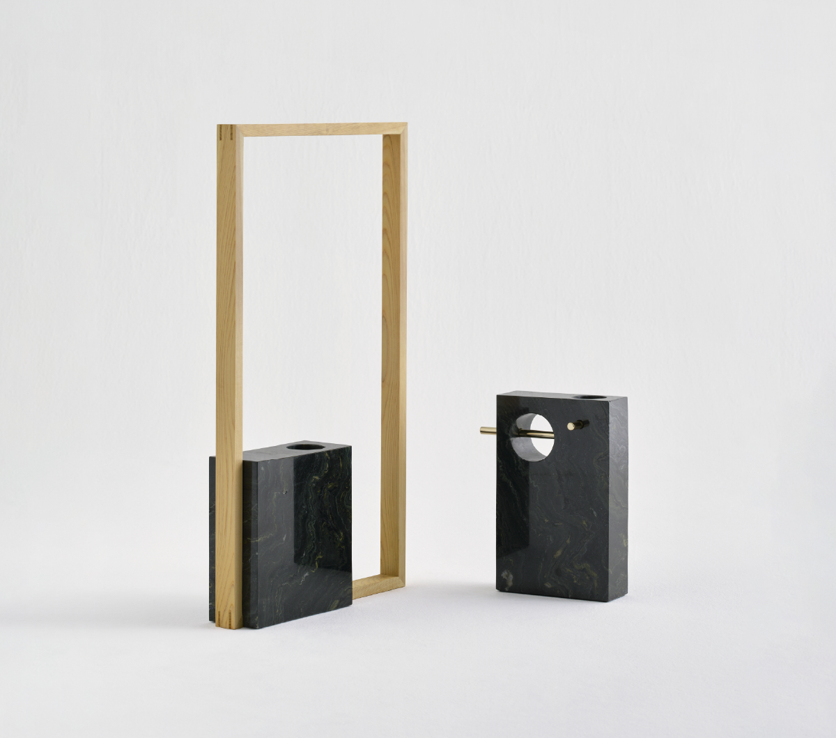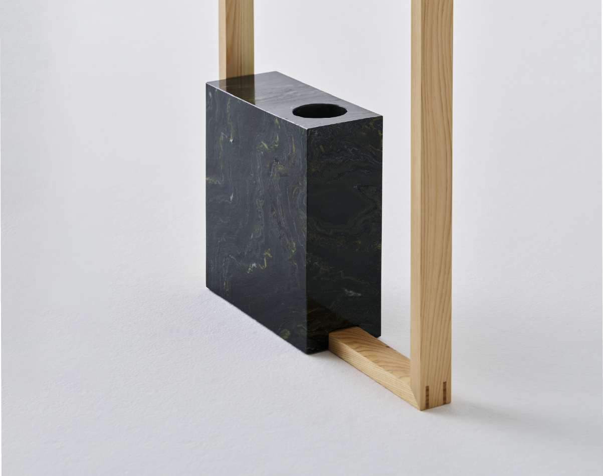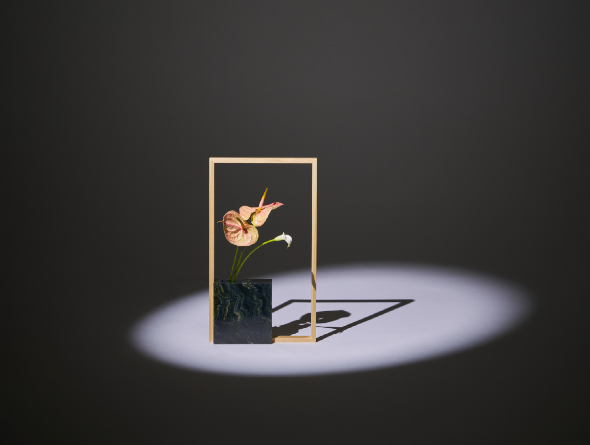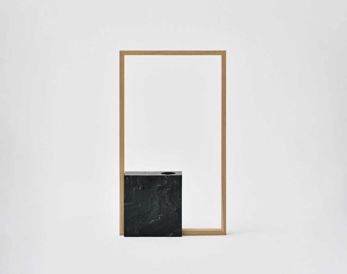 The MOTION series, which I designed this time, adds the theme of a single motion to the profound blue mass of Aoishi. " Framing "A vase that frames the space like painting a picture.The Aoishi, which supports the frame, imparts a dignified depth and elegance to the space being depicted.