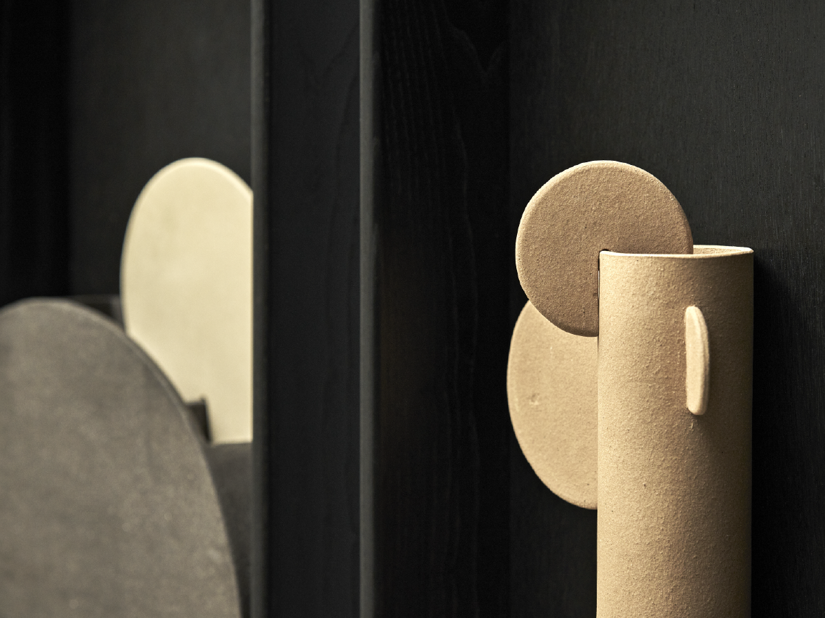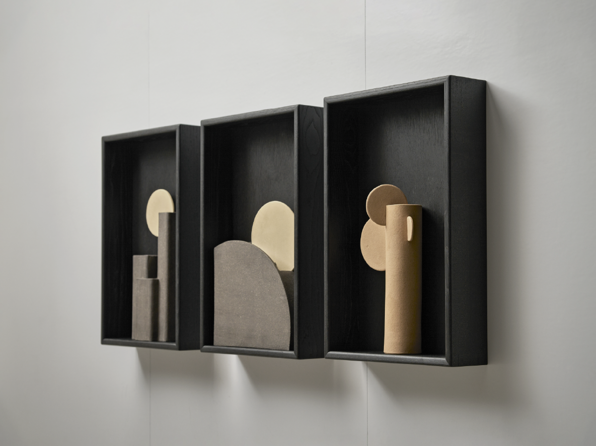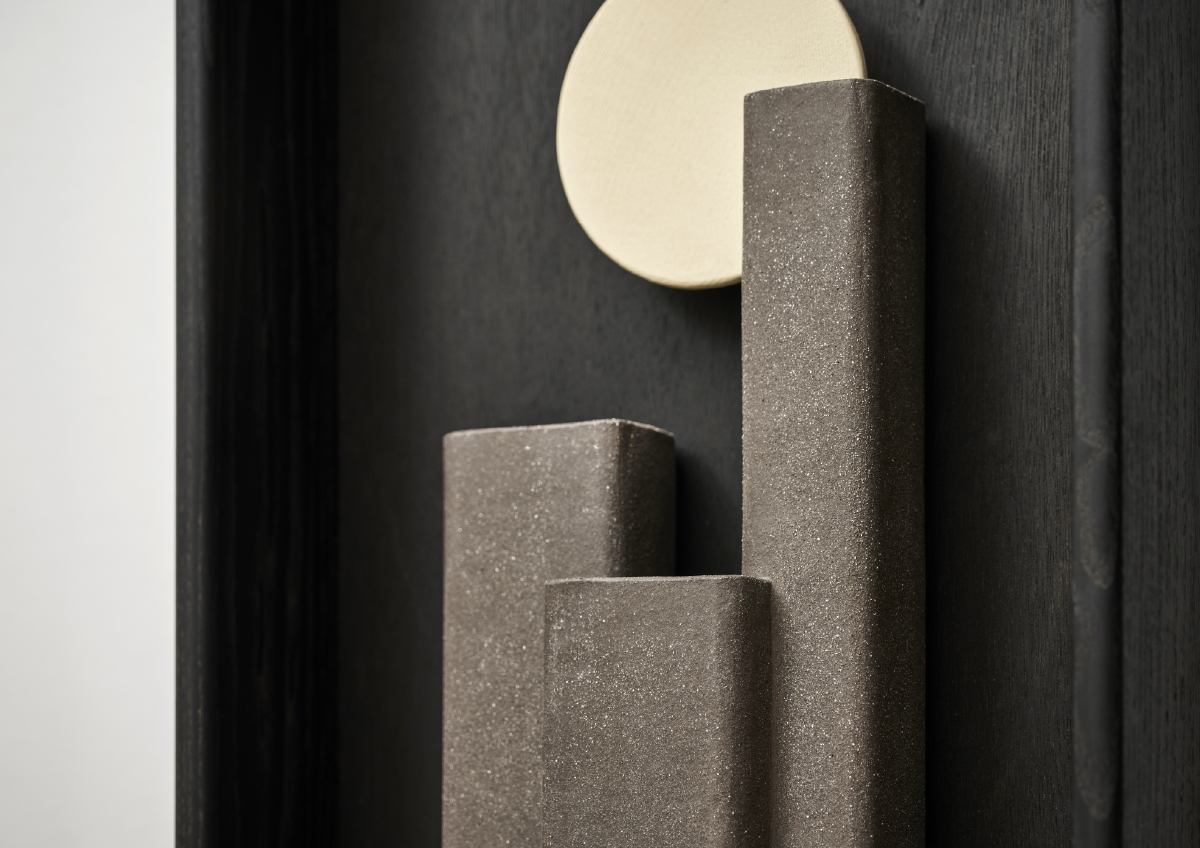 A vase inspired by hanafuda, traditional Japanese playing cards. Faint, nostalgic motifs reimagined as minimal 3D forms—capturing the essence of Japan’s seasonal landscapes. Unglazed clay brings out the raw texture and warmth of the material. The hanafuda-style frame can be hung on the wall, adding depth and quiet memory to any space.
