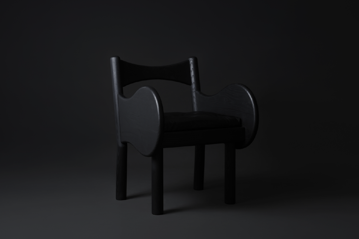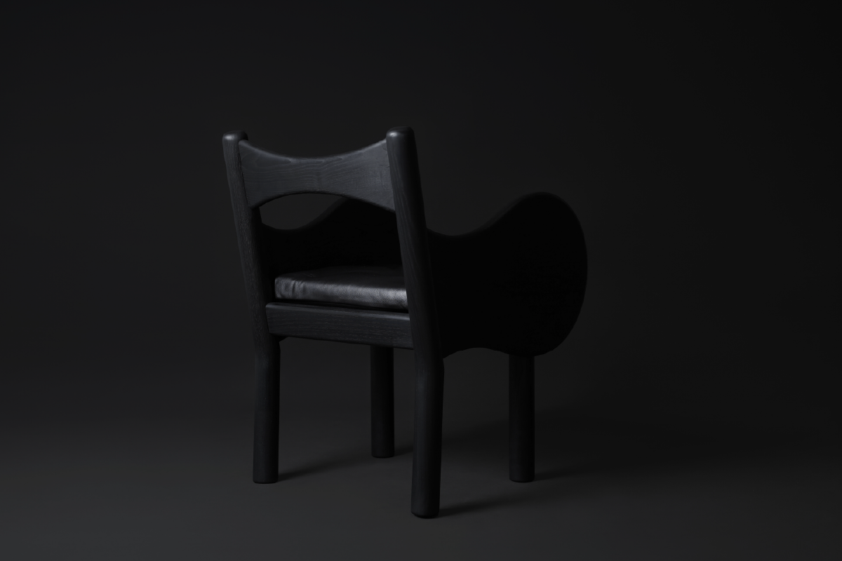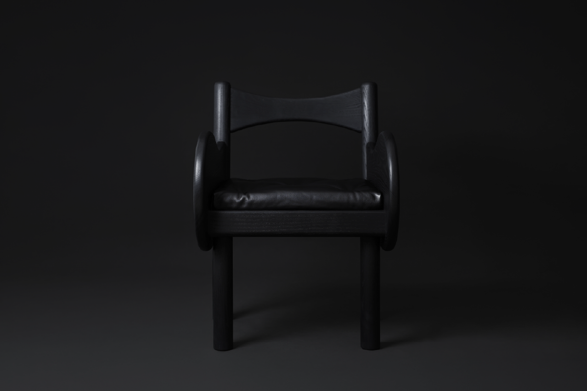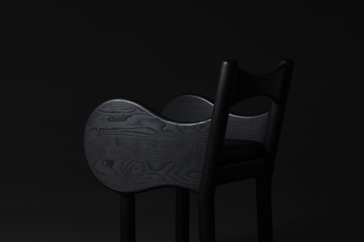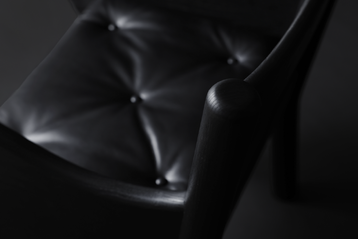 The Hug armchair, with its distinctive curved arms, looks as if it's reaching out with open arms, inviting you in with a gentle embrace.The Black ver. uses iron acetate, which reacts with the tannins naturally present in the wood, resulting in a deep, rich black finish that retains the wood grain and vessels, unlike typical black paint finishes.